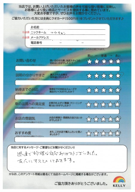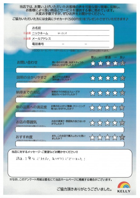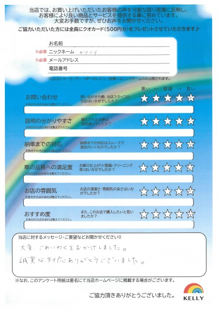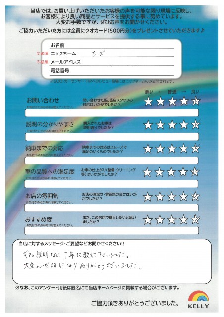 ケリーに来店されたお客様の声をご紹介します