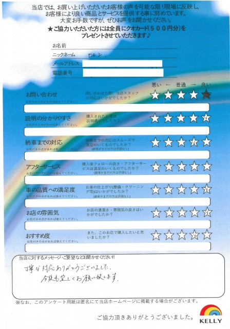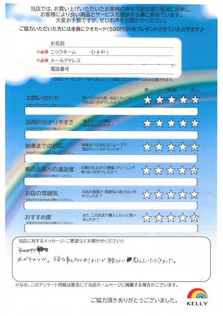 ケリーに来店されたお客様の声をご紹介します