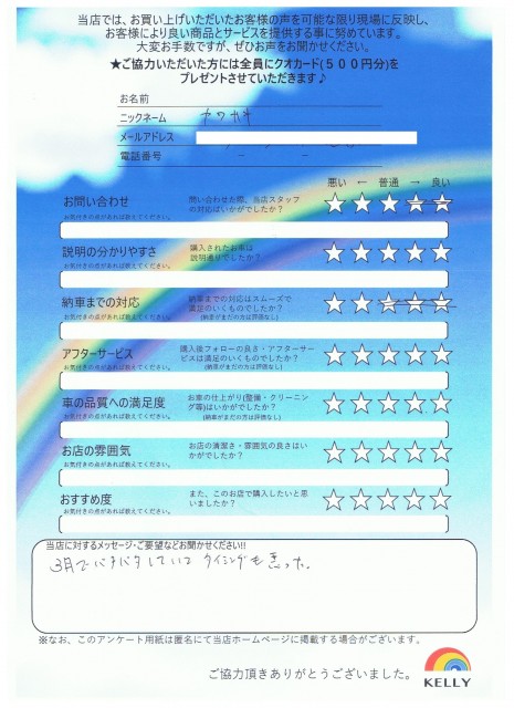 ケリーに来店されたお客様の声をご紹介します